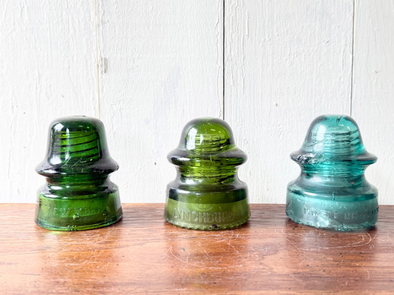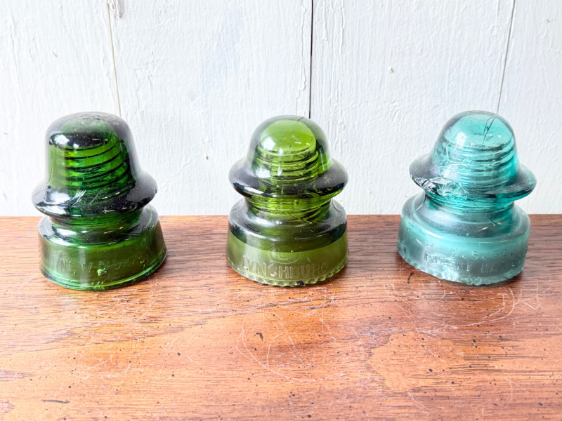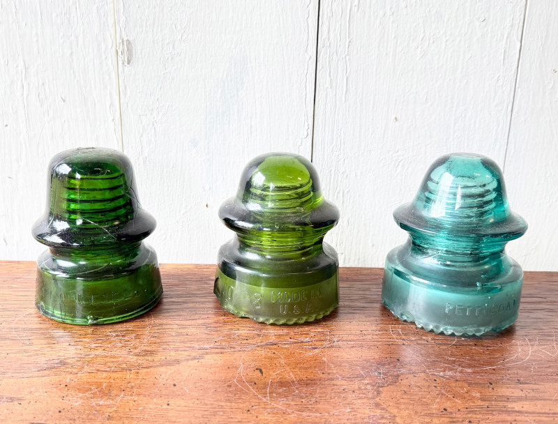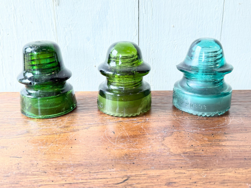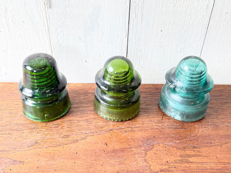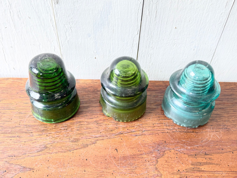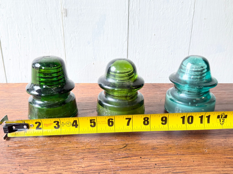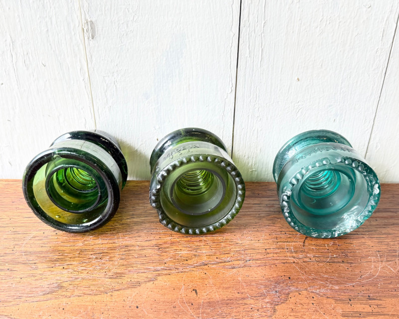 Set of 3 Vintage Glass Electrical Insulators (#7)
