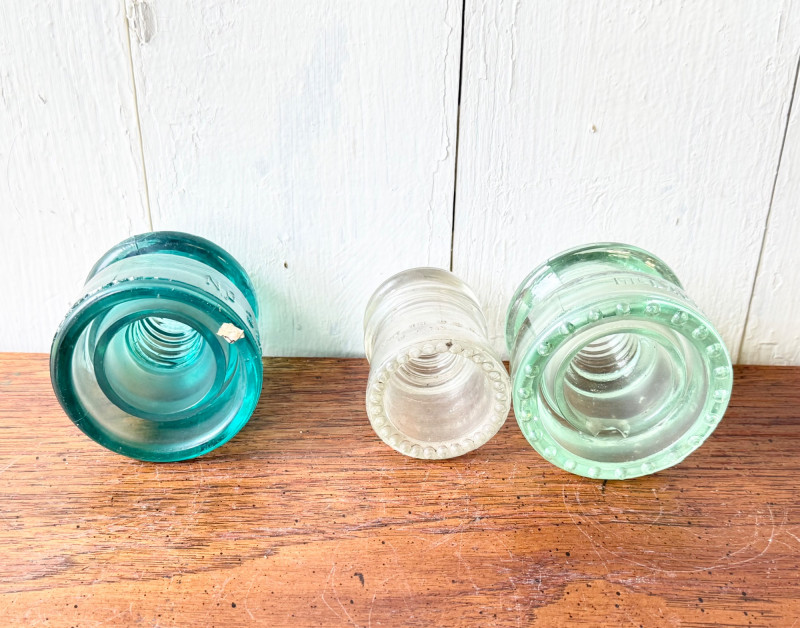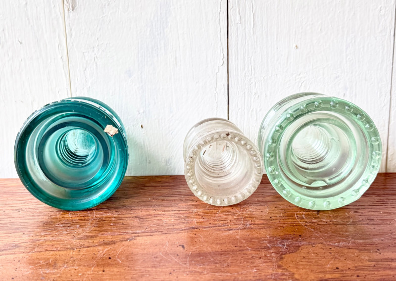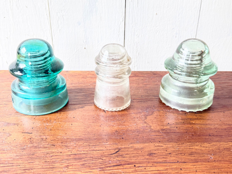 Set of 3 Vintage Glass Electrical Insulators (#10)