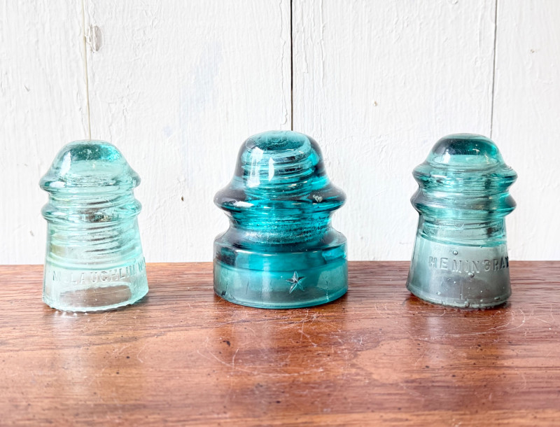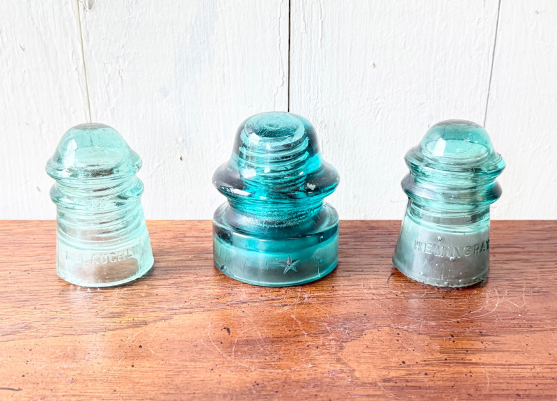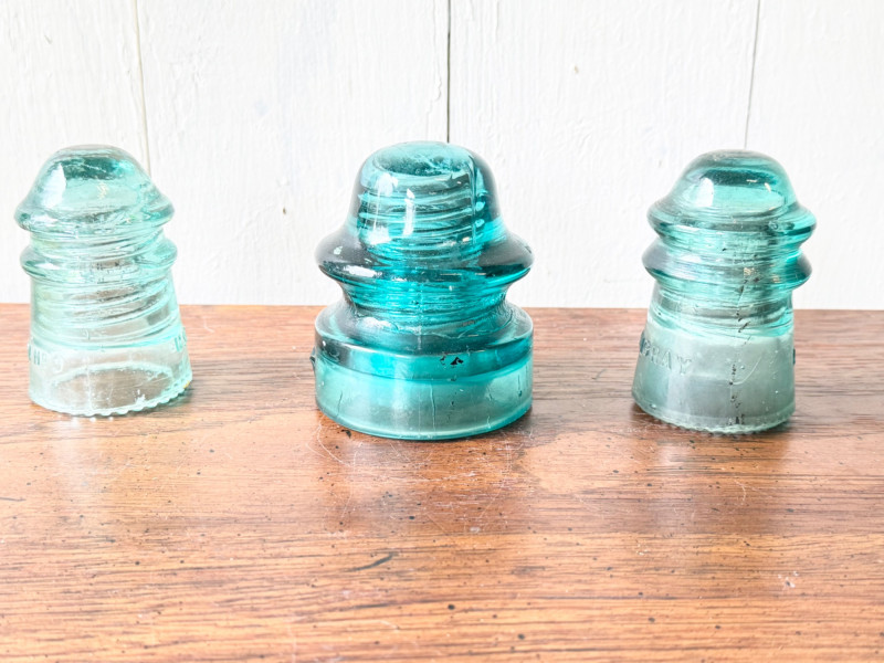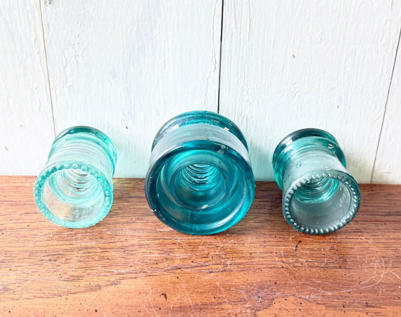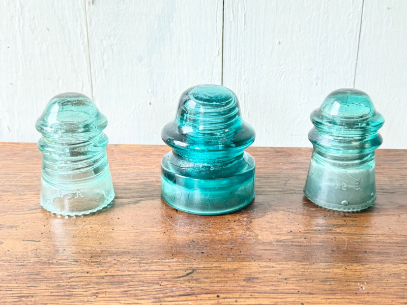 Set of 3 Vintage Glass Electrical Insulators (#11)