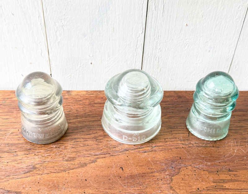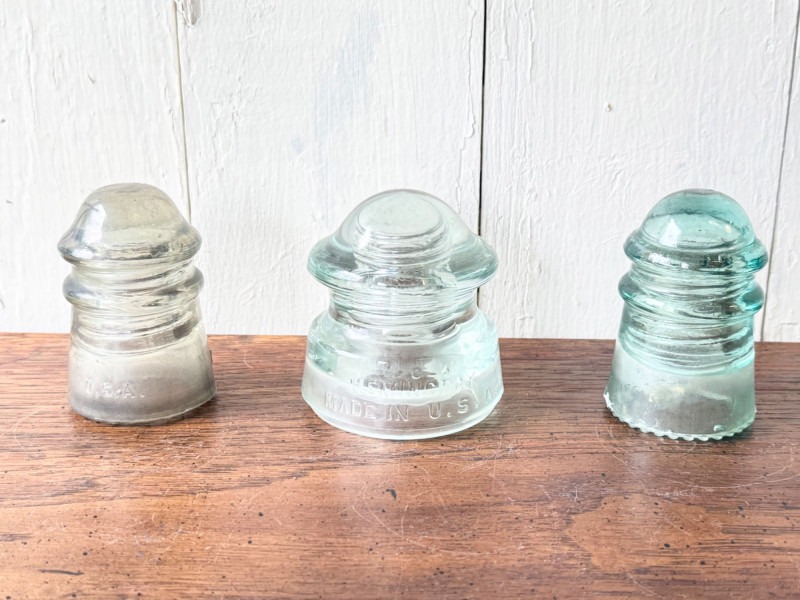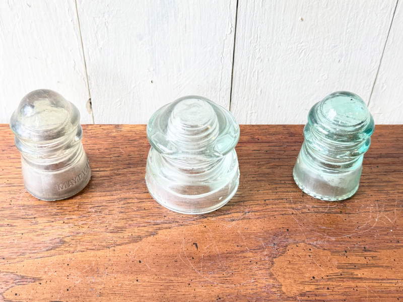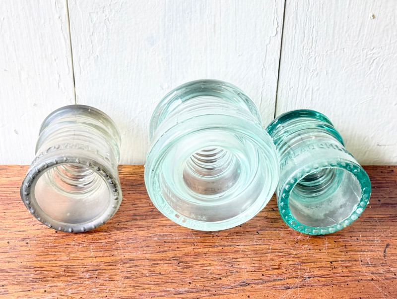 Set of 3 Vintage Glass Electrical Insulators (#12)