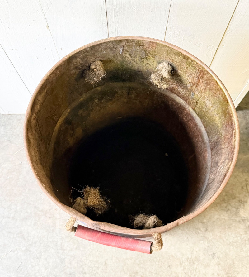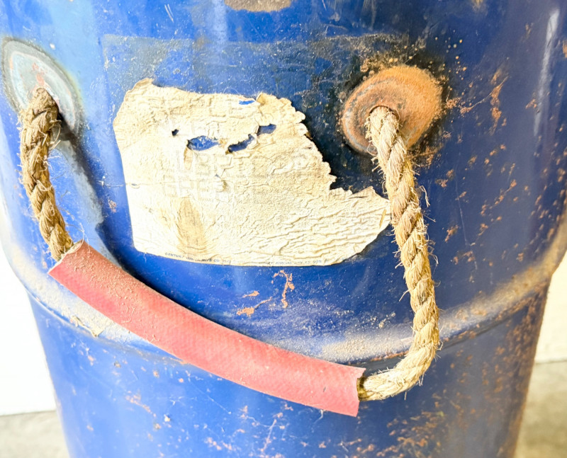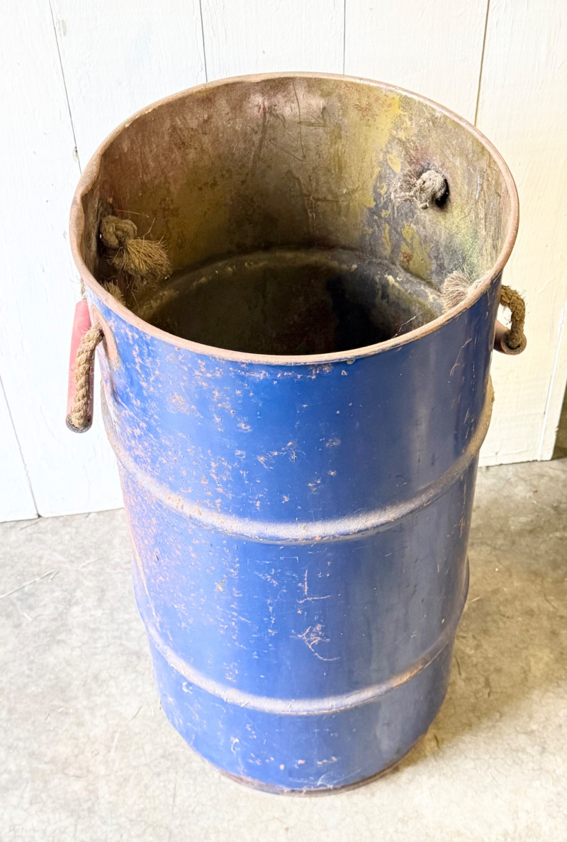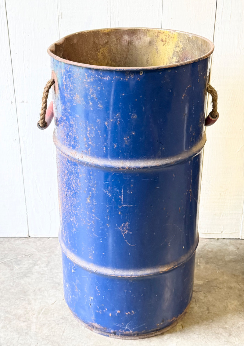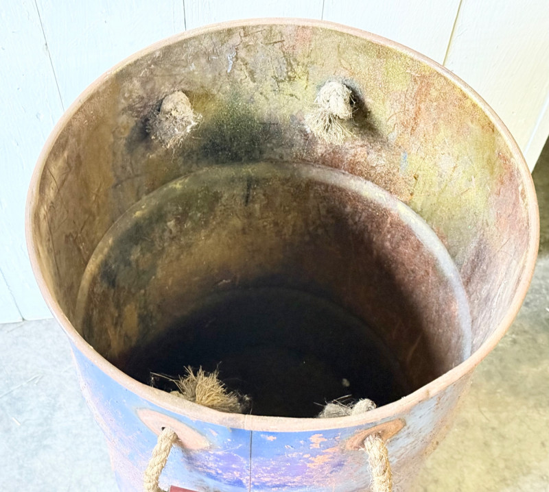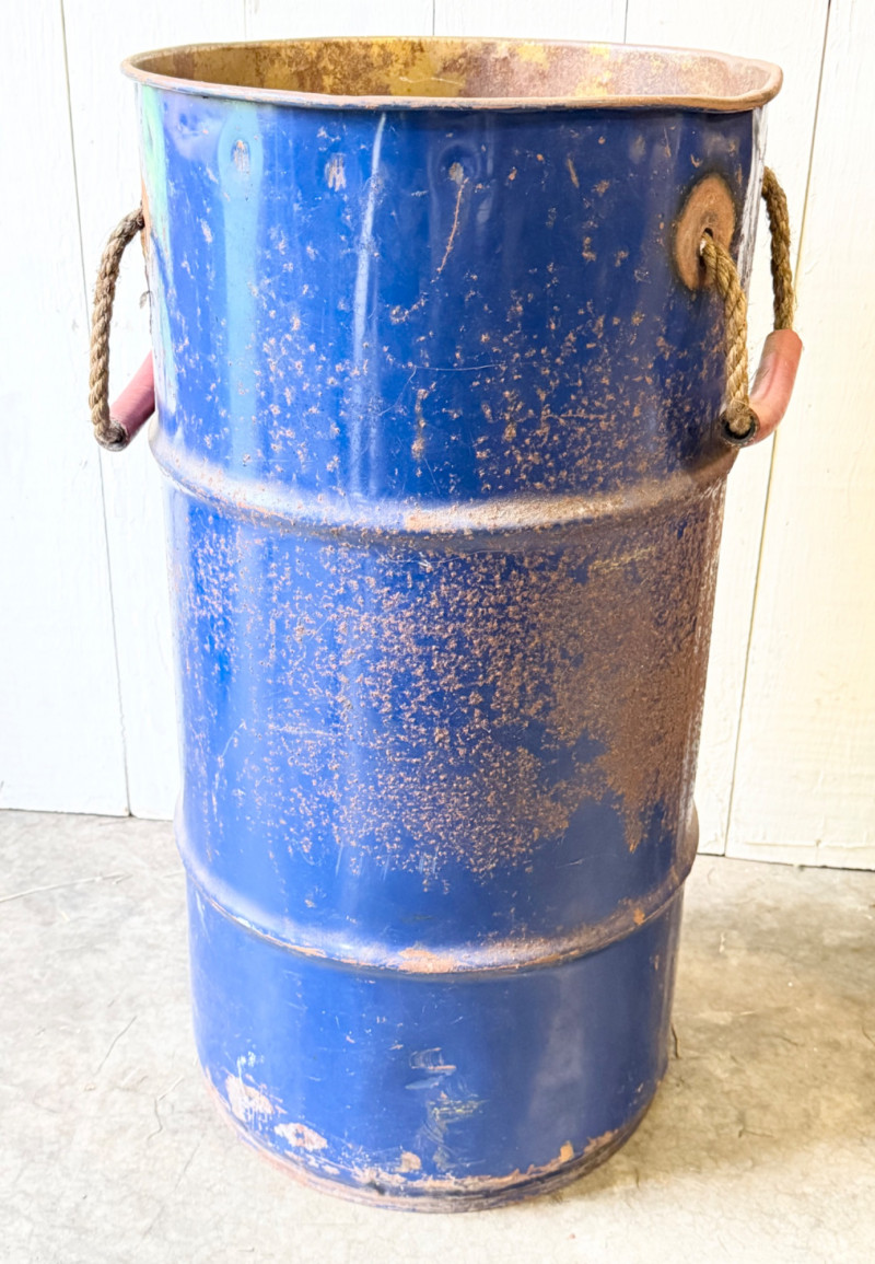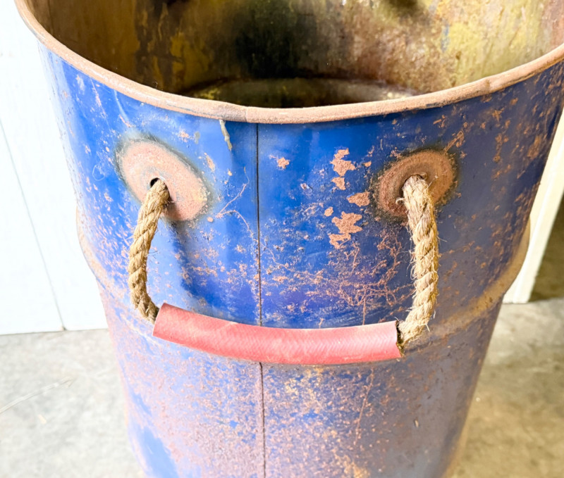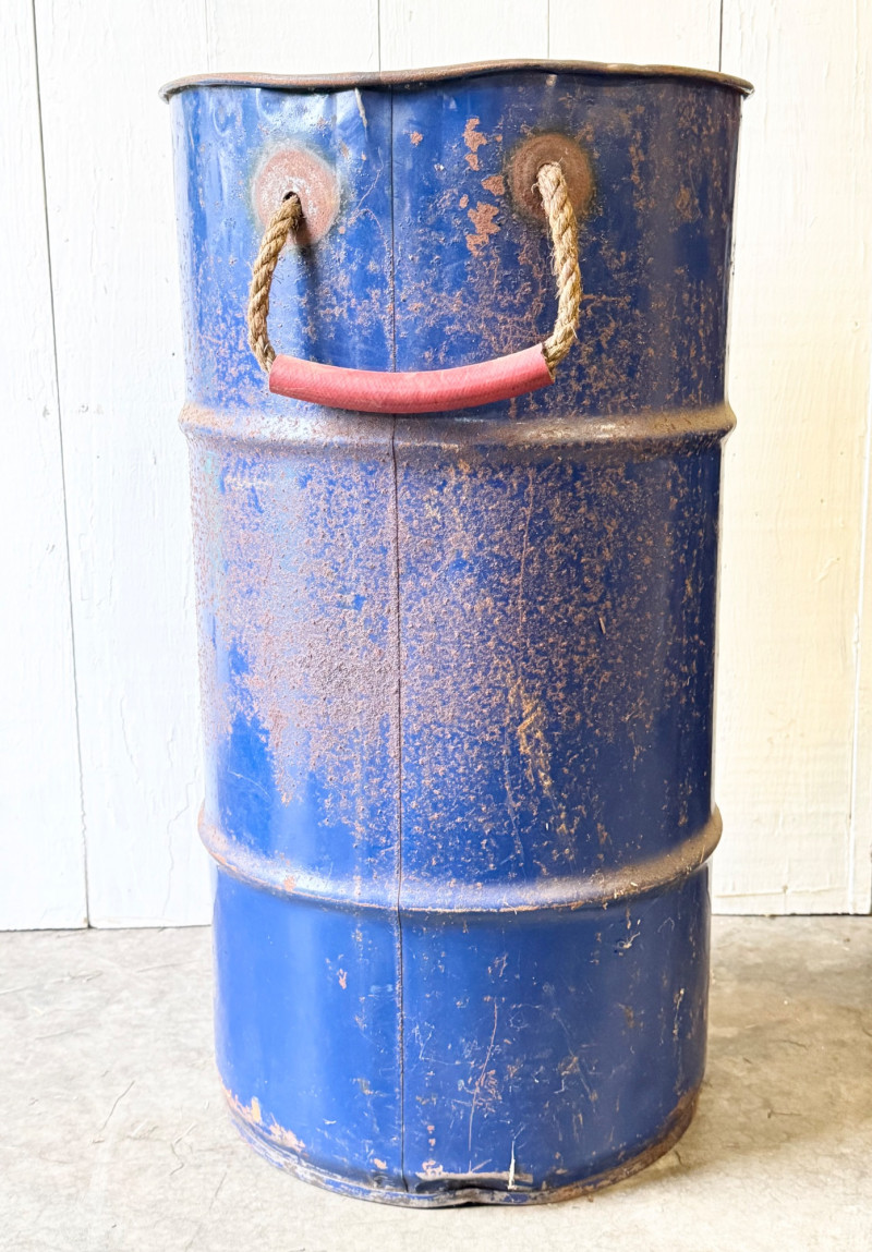 Lot # 101 - Rustic Industrial Metal Barrel With Rope & Wood Handles