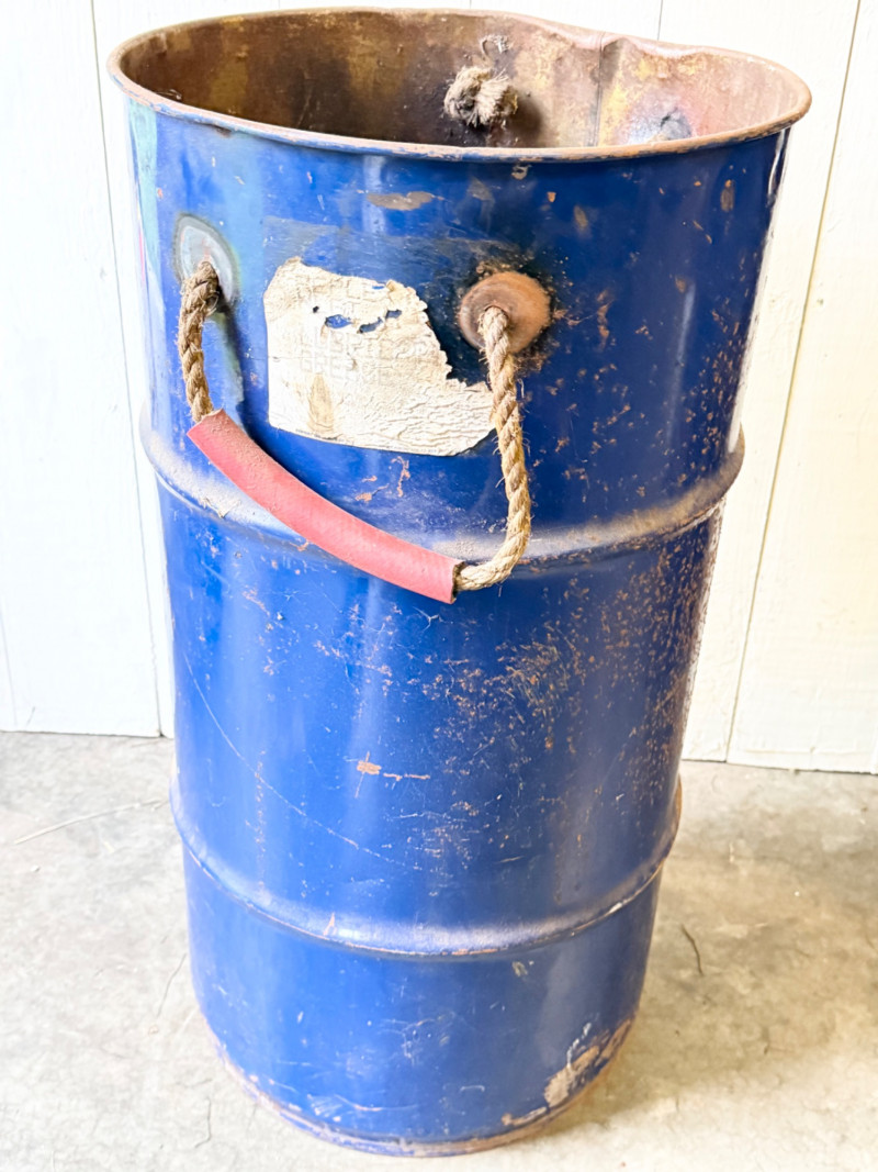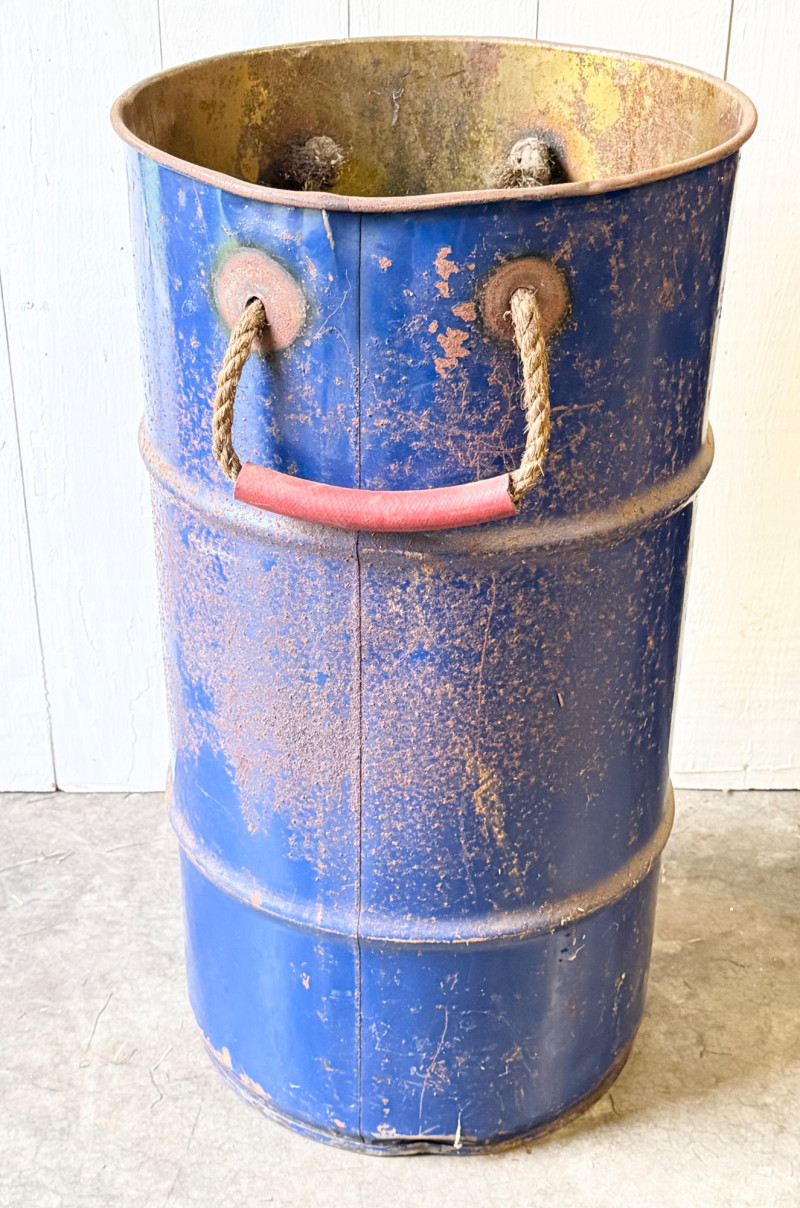 Rustic Industrial Metal Barrel With Rope & Wood Handles