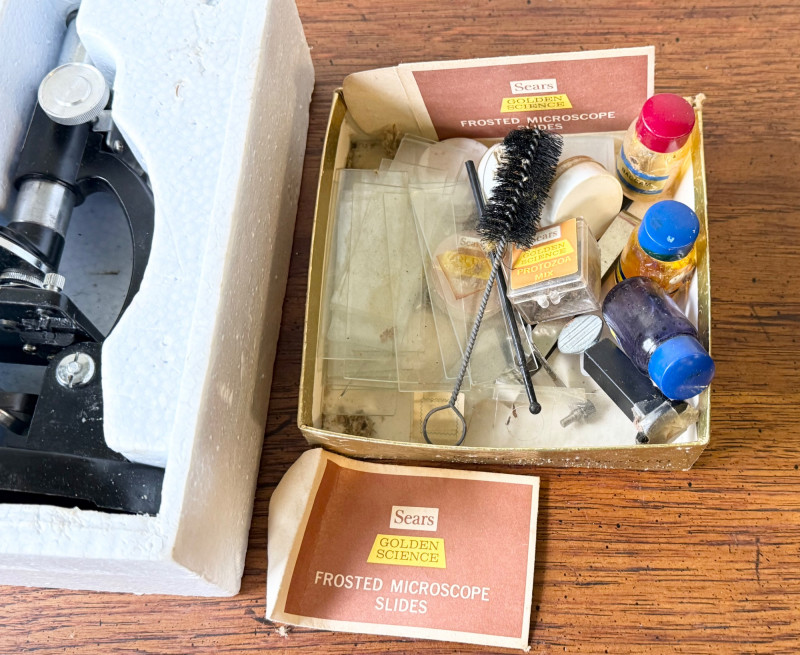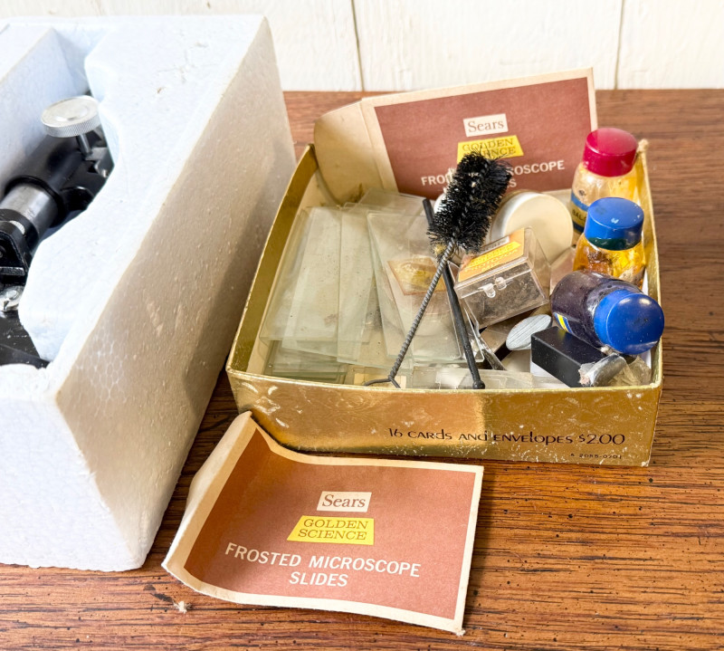 Lot # 102 - Vintage Sears Golden Science Microscope Kit w/ Slides & Accessories