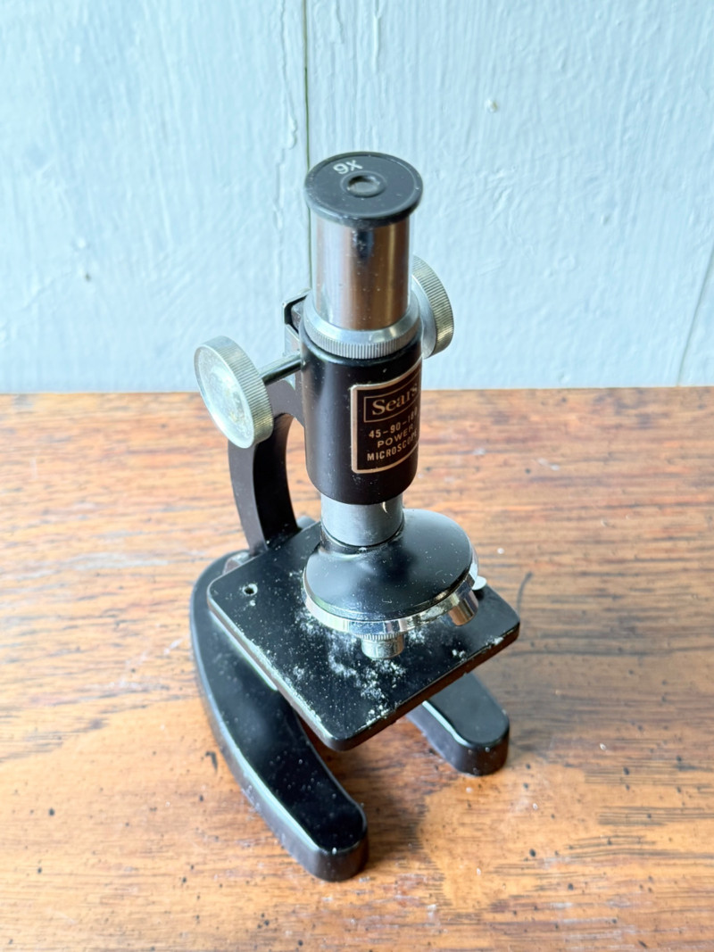 Vintage Sears Golden Science Microscope Kit w/ Slides & Accessories 45-90-180x