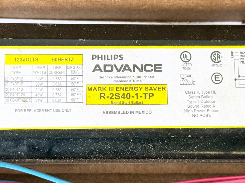 Lot # 105 - Philips Advance R-2S40-1-TP Ballast 2 Lamp F40T12 Rapid Start 120V NOS