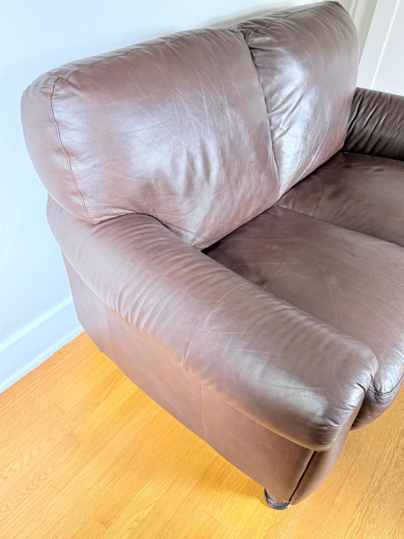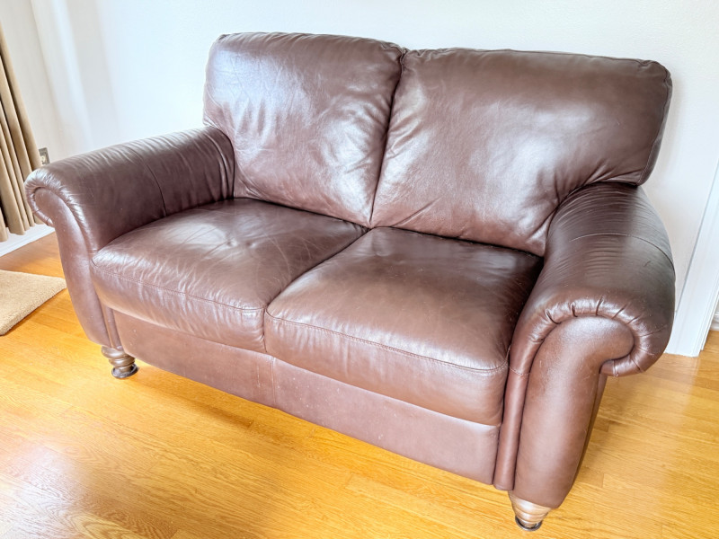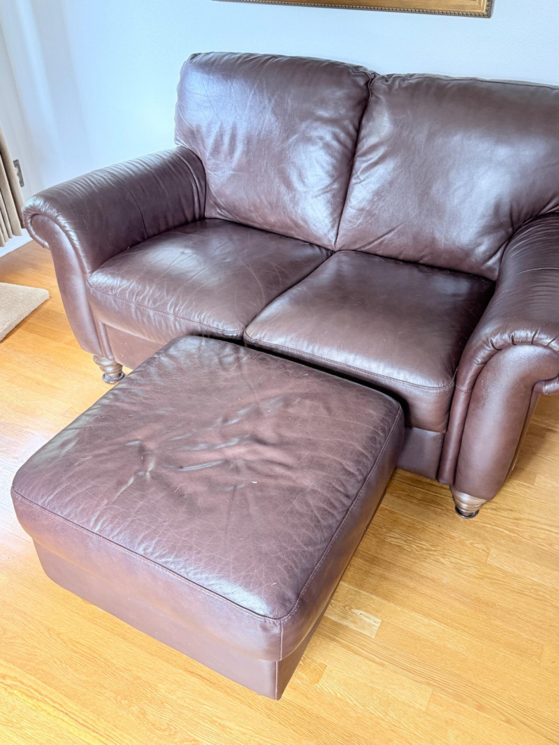Italsofa Loveseat w/ Matching Ottoman Bidding on this lot is an agreement that: (1) You will have 2 or 3 capable, able bodied persons to lift and load at a minimum. (2) You will bring a hand truck and/or any other tools needed to remove this item. If these steps are not followed your next item will be forfeit and no refund given.