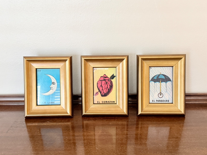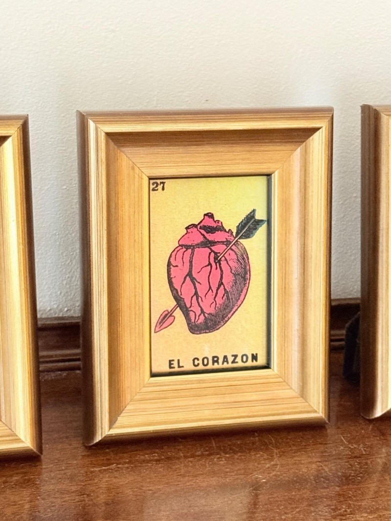 Set of 3 Framed Loteria-Style Folk Art Prints - Moon, Heart, Umbrella