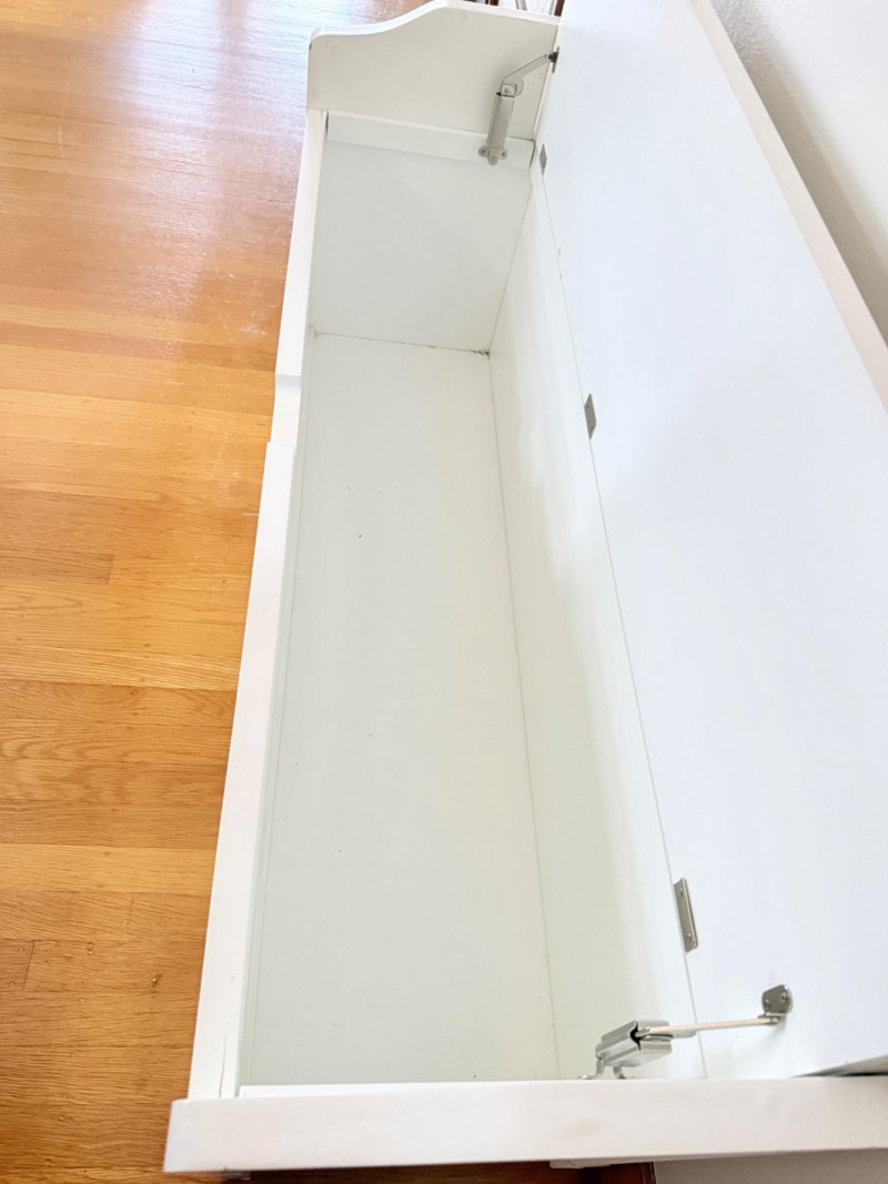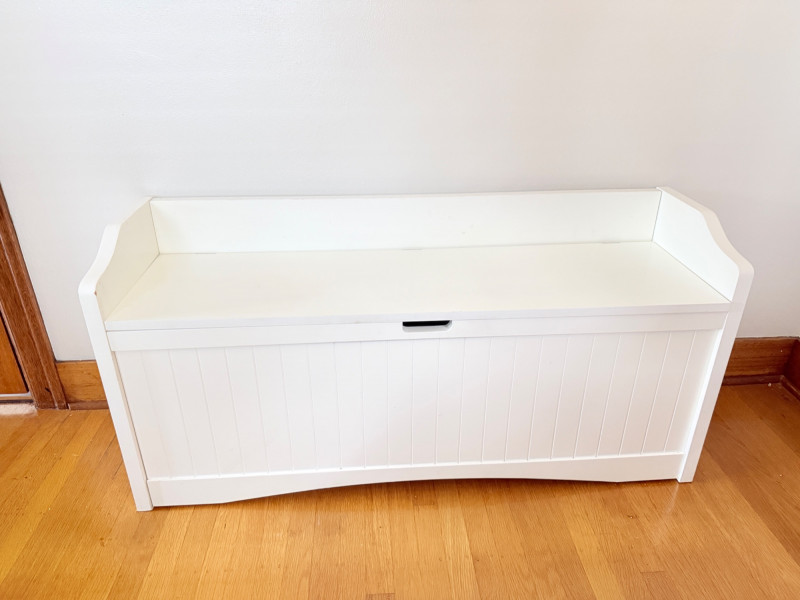 Wooden Storage Bench w/ Seat Cushion Bidding on this lot is an agreement that: (1) You will have 2 or 3 capable, able bodied persons to lift and load at a minimum. (2) You will bring a hand truck and/or any other tools needed to remove this item. If these steps are not followed your next item will be forfeit and no refund given.