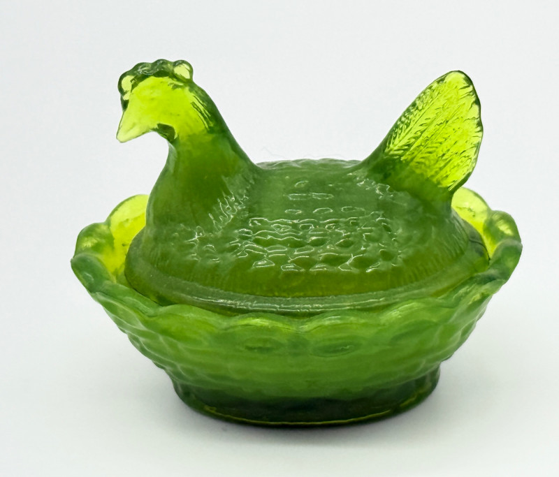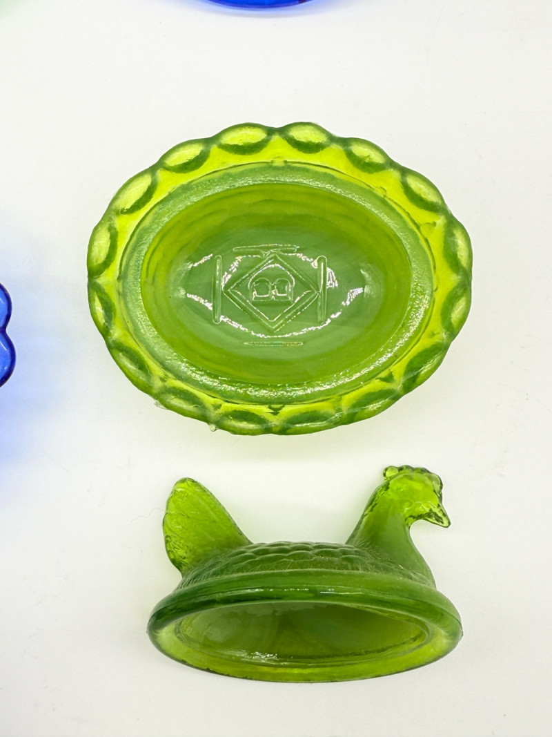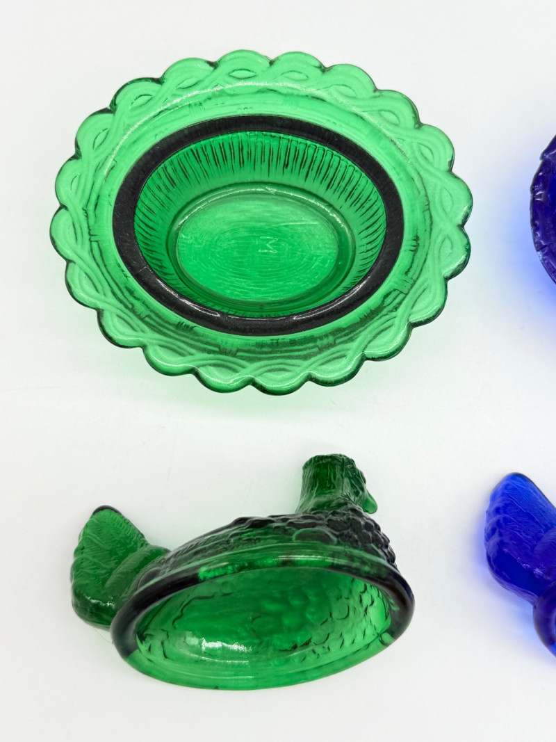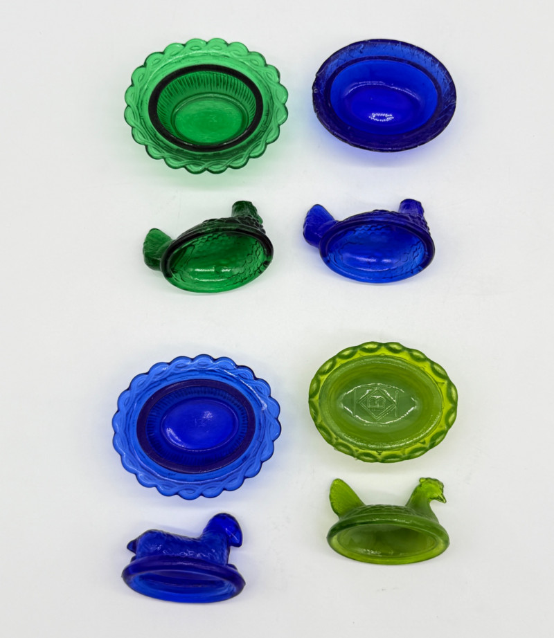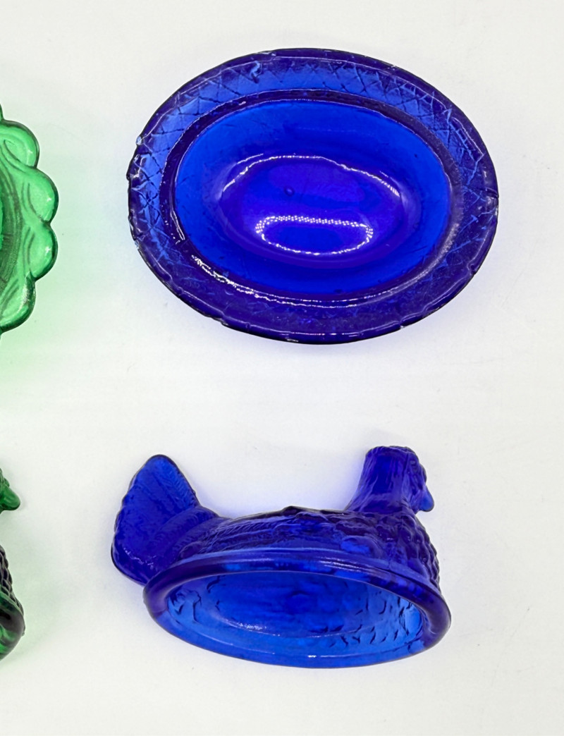 Lot # 78 - Vintage 2 Piece Covered Miniature Glass (1) Lamb (3) Hen on Nest Dish