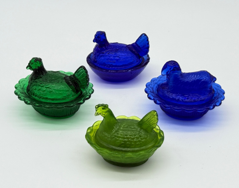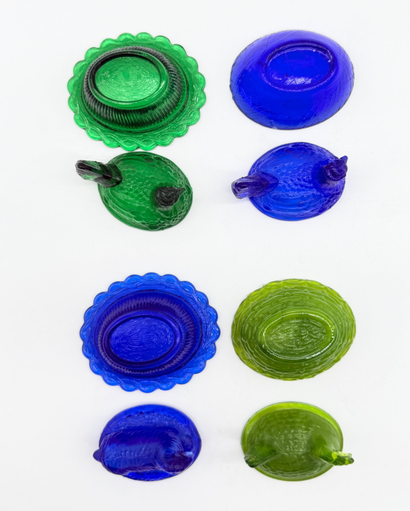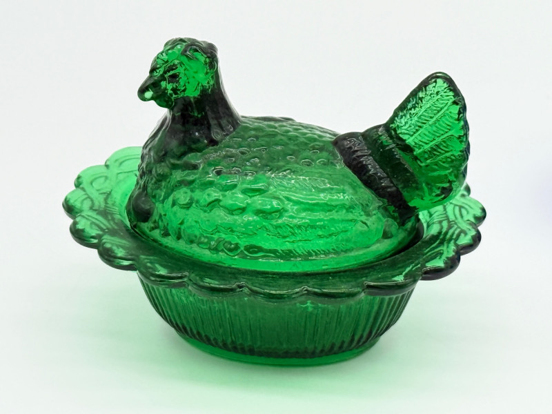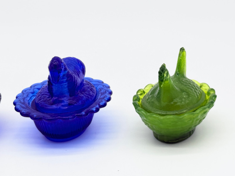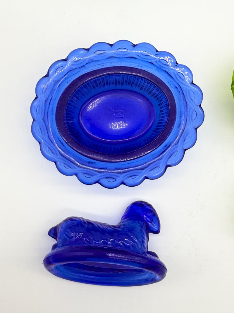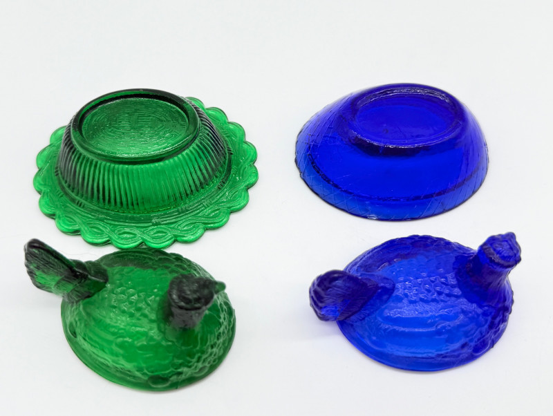 Vintage 2 Piece Covered Miniature Glass (1) Lamb (3) Hen on Nest Dish