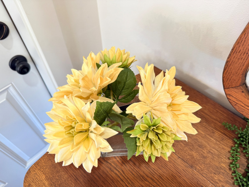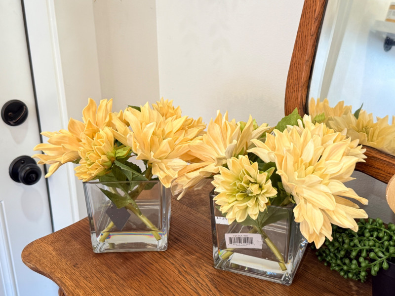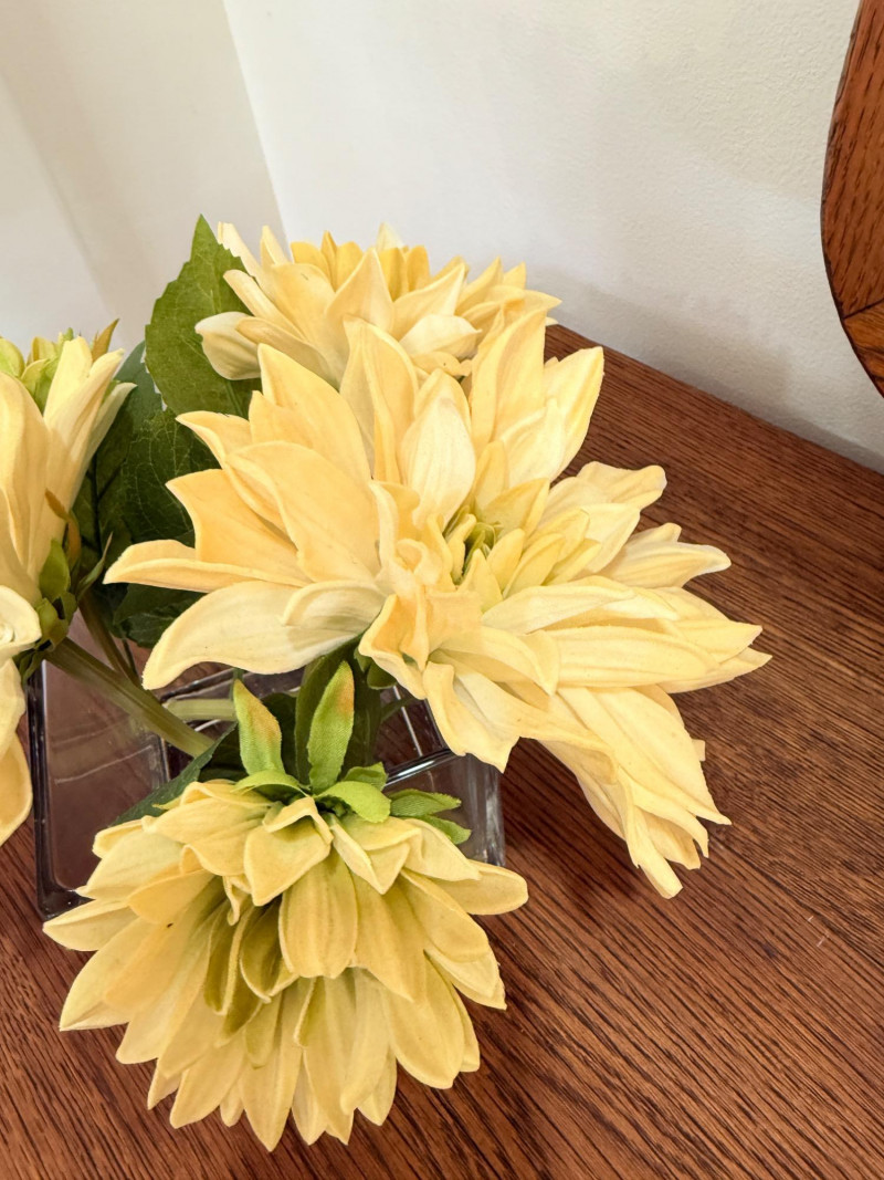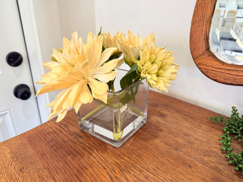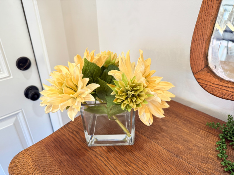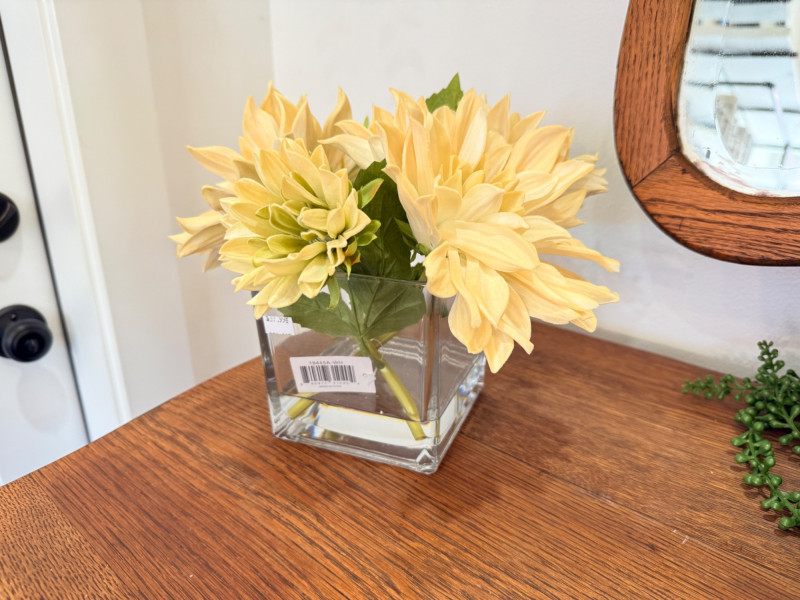 Artificial Yellow Dahlias in Glass Vase - Retail $39.99