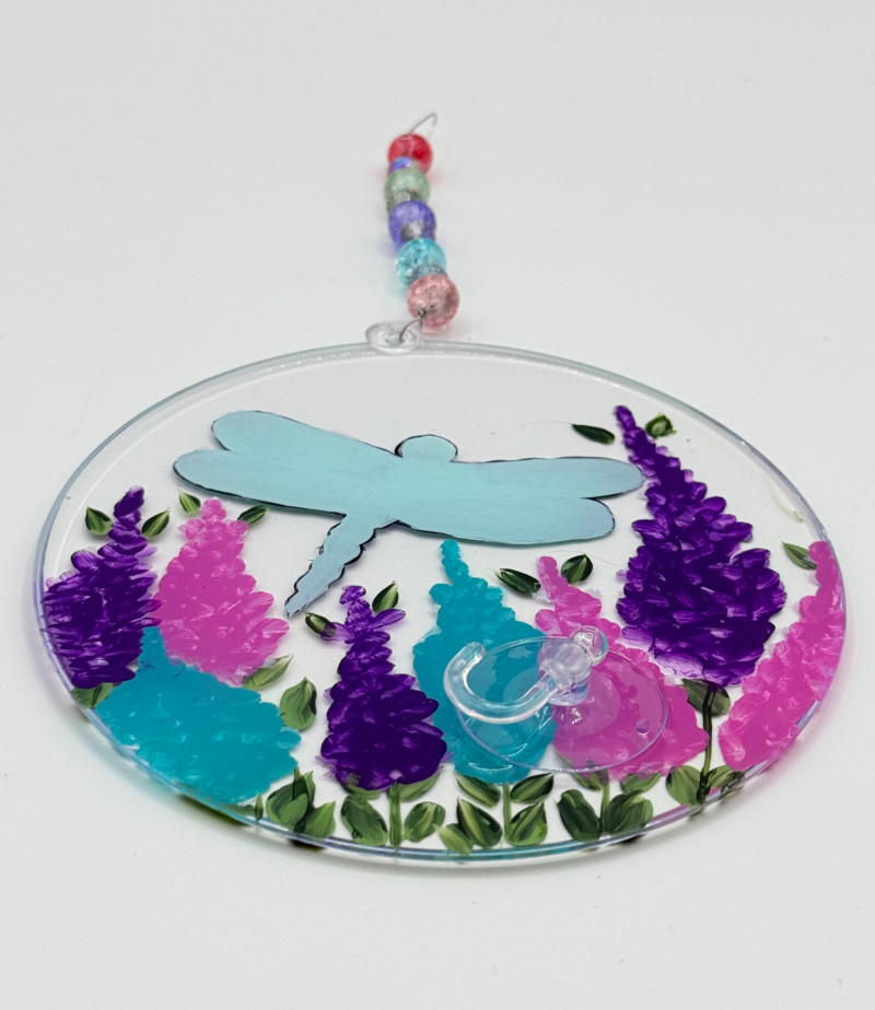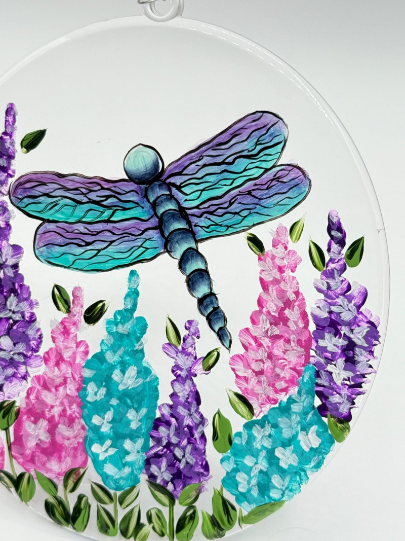 Judy's Hand Painted Dragon Fly Window Display - Arlington Artist Help Support Local Artist