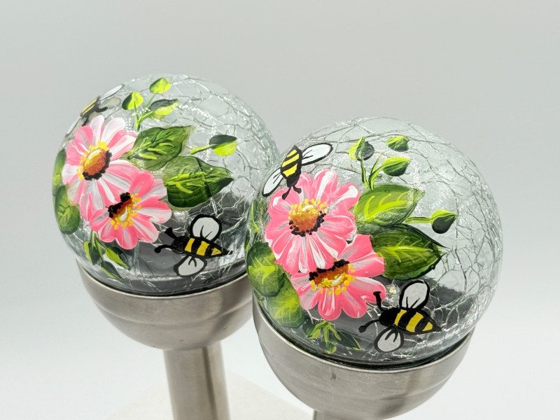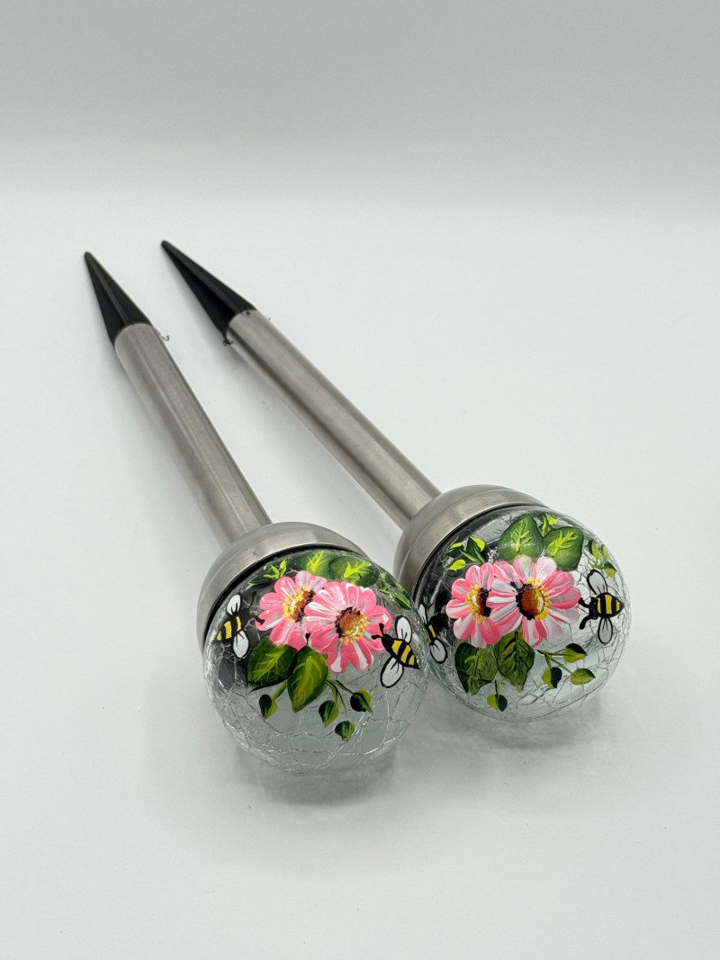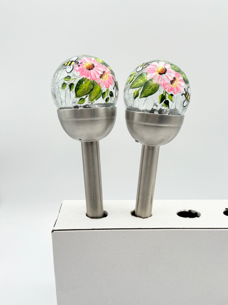 Judy's Hand Painted Daisy & Bees Solar Light - Arlington Artist Help Support Local Artist